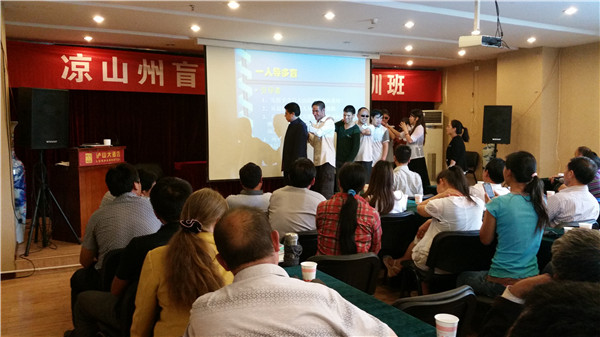 上图:州残联纪检组长沙萍在开班仪式上讲话
